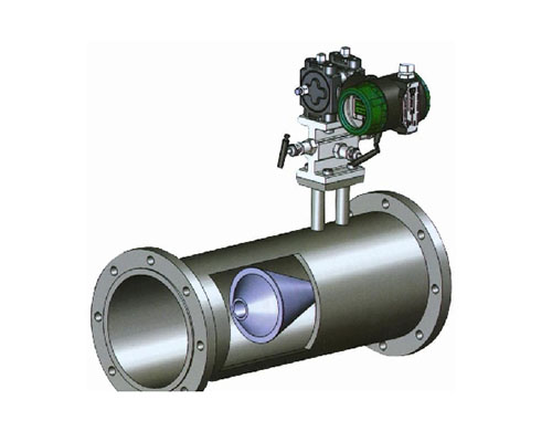 錐形流量計(jì)是在管道中心處懸掛一錐形節(jié)流件,錐形件阻礙介質(zhì)的流動(dòng),重塑流速曲線,在錐形性的下游可立即形成低壓區(qū),管道上游的正壓同經(jīng)節(jié)流件節(jié)流后的下游的負(fù)壓之間有一差壓,將正、負(fù)壓用取壓口取出,正壓口位于管道的上游,負(fù)壓口位于錐體的末端,通過(guò)測(cè)量?jī)烧咧g差壓,根據(jù)伯努力方程即可計(jì)算出管道中的流量,錐體位于管線中心,可對(duì)所測(cè)介質(zhì)的流速曲線進(jìn)行優(yōu)化,因此測(cè)量精度高,對(duì)儀表上、下游的直管段要求低。