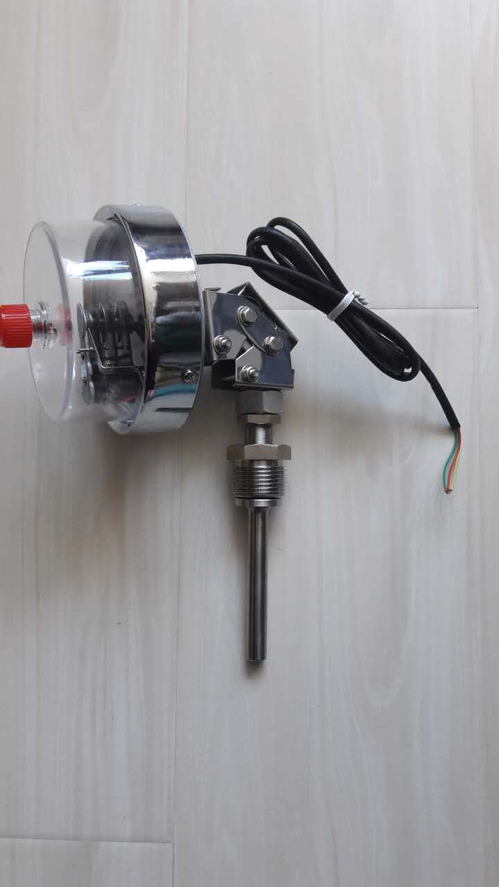 WSSX系列電接點(diǎn)雙金屬溫度計(jì)帶有電接觸裝置一即機(jī)械電接點(diǎn)。當(dāng)被測(cè)介質(zhì)溫度變化時(shí),自由端上的細(xì)軸及轉(zhuǎn)向傳動(dòng)機(jī)構(gòu)帶動(dòng)指針及動(dòng)觸點(diǎn)轉(zhuǎn)動(dòng),在標(biāo)度盤上指示出溫度的變化值,當(dāng)其與定觸點(diǎn)(上、下限定觸點(diǎn))接觸或斷開時(shí)的瞬時(shí),使電路系統(tǒng)中的繼電器及接觸器動(dòng)作,以達(dá)到自動(dòng)控制和報(bào)警目的,應(yīng)符合JB/T8803 1998標(biāo)。