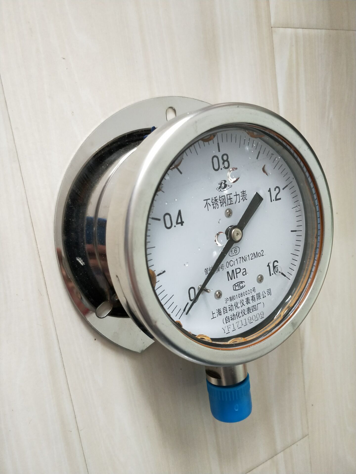 YB-150T不銹鋼徑向帶邊壓力表0-0.1Mpa使用環(huán)境溫度:-25~70℃(外殼內(nèi)充液) -40~70℃(外殼內(nèi)不充液) 溫度影響:不大于0.4%/10℃(使用溫度偏離20±5℃) 抗工作環(huán)境振動(dòng):V·H·4級(jí)(外殼內(nèi)充液) V·H·3級(jí)(外殼內(nèi)不充液) 外殼防護(hù)等級(jí):IP65 重量:0.2kg (Y-60B-F) 0.6kg (Y-100B-F) 1.0 kg (Y-150B-F) 導(dǎo)壓系統(tǒng)及外殼等材質(zhì)